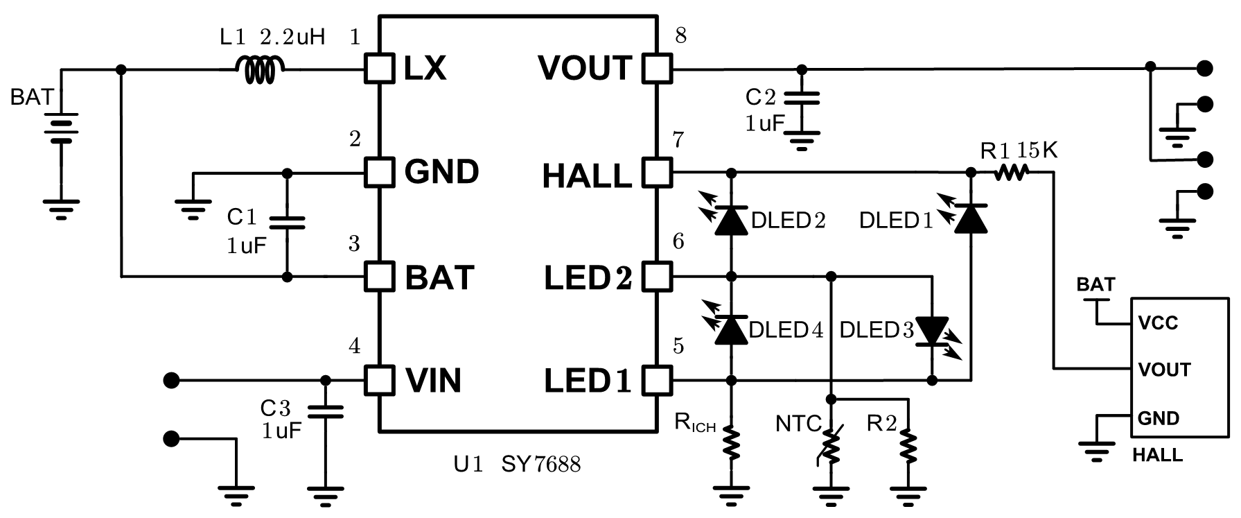 | SY7638 | 6 | Switch | 0.2/0.5/1 | 4.2 | 1 | 7 | 0.93 | 2*LED driver/4*LED driver | Automatic load detection/key switch | SOP-8 |